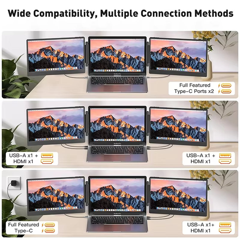 14" Laptop Screen Extender S3 FHD 1080P IPS Triple Portable Monitor for Laptop Compatible with Windows Mac Android Chrome Switch
