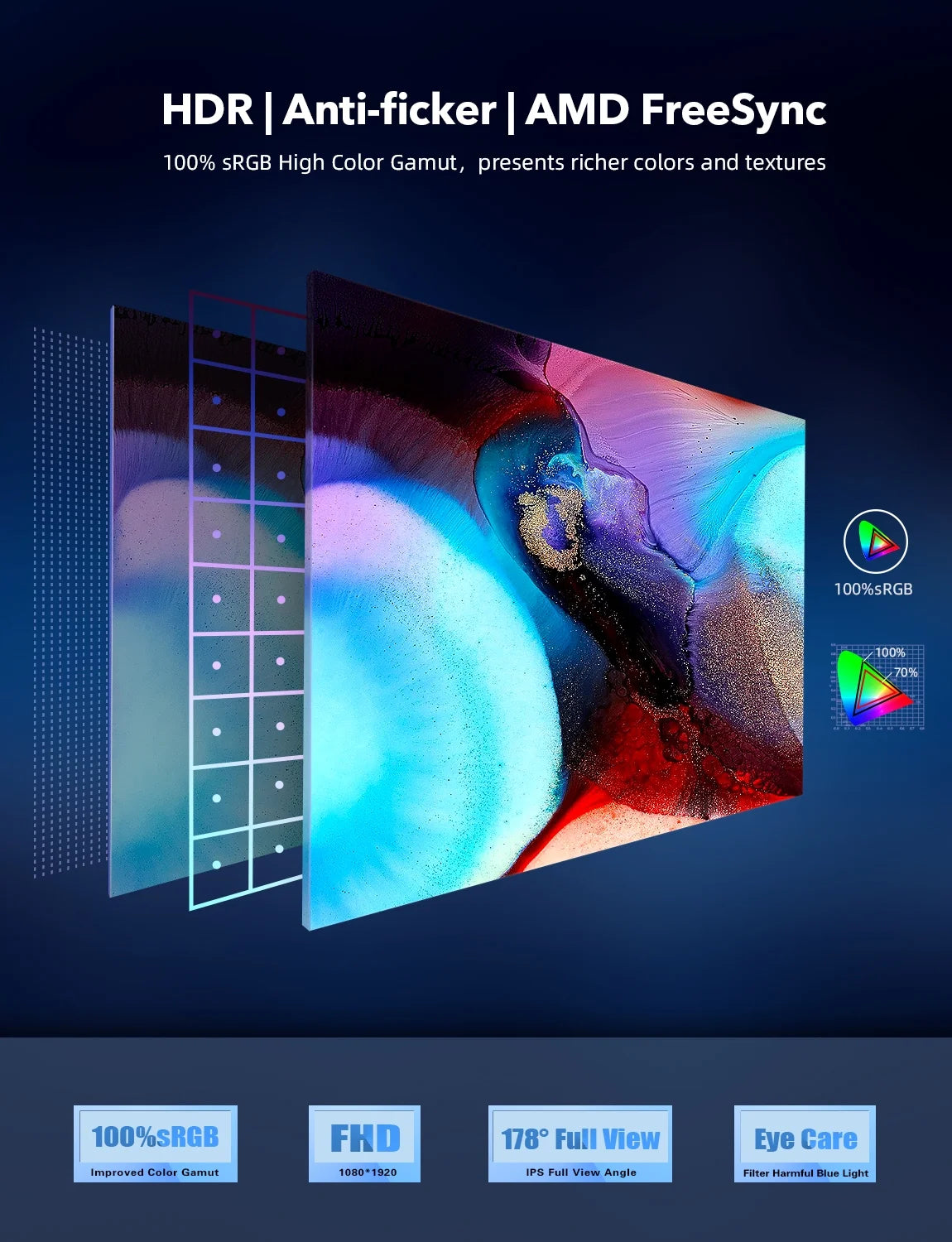 - 16.7M(8-bit) 72% NTSC Color gamut