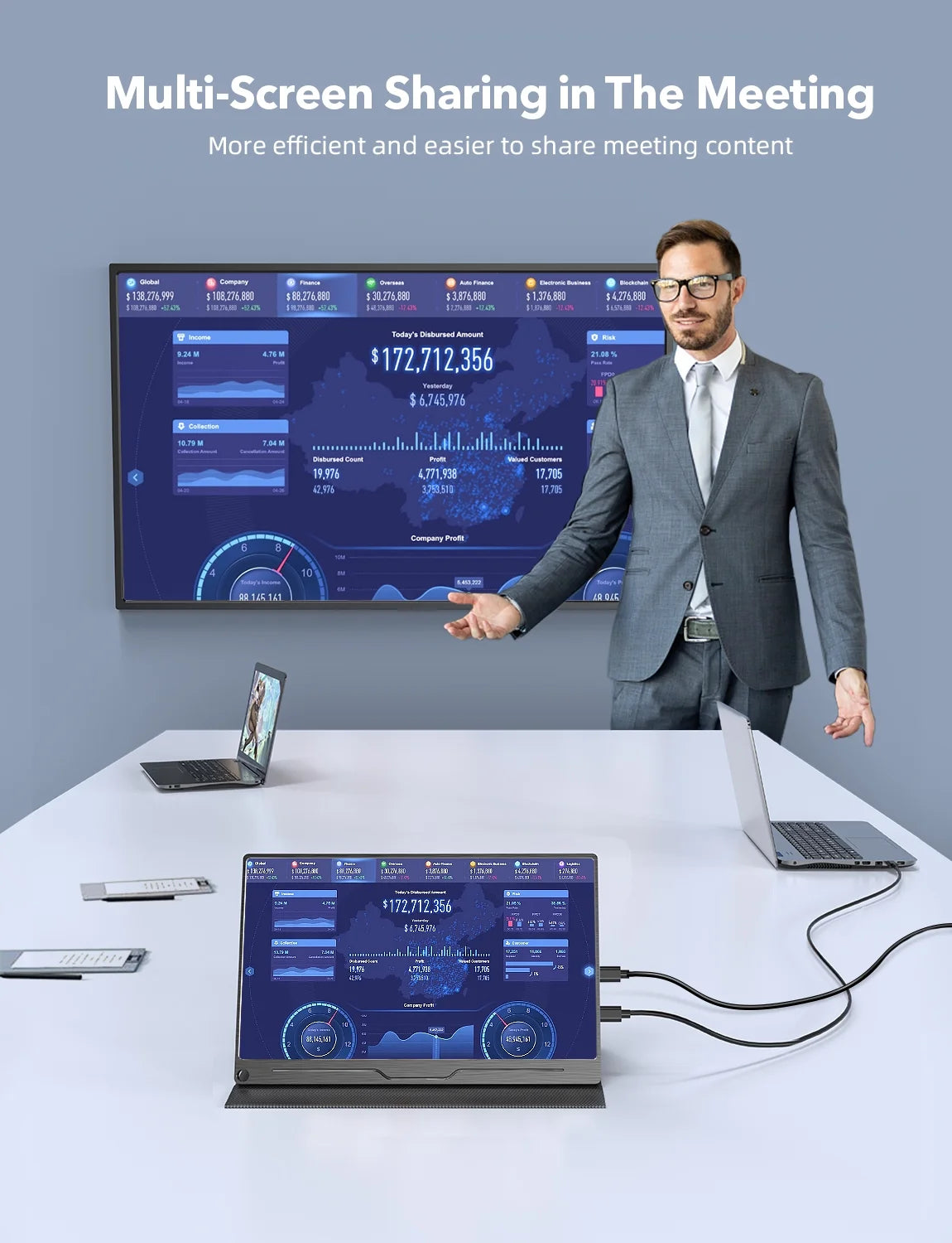 [BOOST EFFICIENCY & PRODUCTIVITY] Duplicate mode synchronously displays work content. Extend mode for simultaneous music, video, reading. Additionally,Vertical and horizontal selection for easier browsing and reading. Second Screen Only mode let the monitor display when PC's screen turn off. Working as second display by WiFi or wired dongle for wireless share with cellphone. As a dual screen for Android TV dongle or box to use as a TV for business man, work & share anytime.